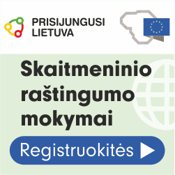 Mokymai vykdomi pagal projektą „Prisijungusi Lietuva“: efektyvi, saugi ir atsakinga Lietuvos skaitmeninė bendruomenė“, kuris finansuojamas Europos regioninės plėtros fondo ir Lietuvos Respublikos valstybės biudžeto lėšomis.