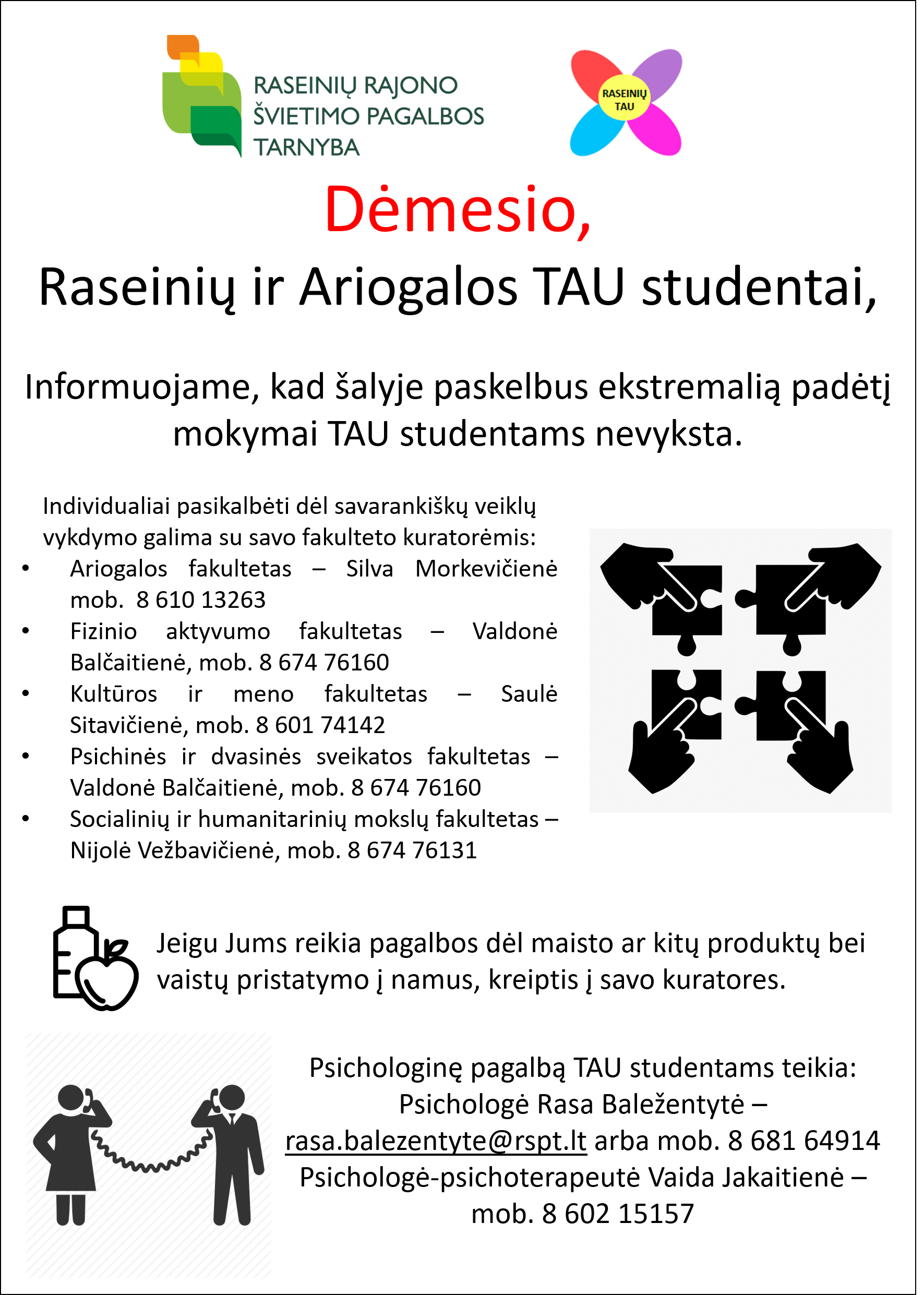 PlačiauInformuojame, kad šalyje paskelbus ekstremalią padėtį mokymai TAU studentams nevyksta.