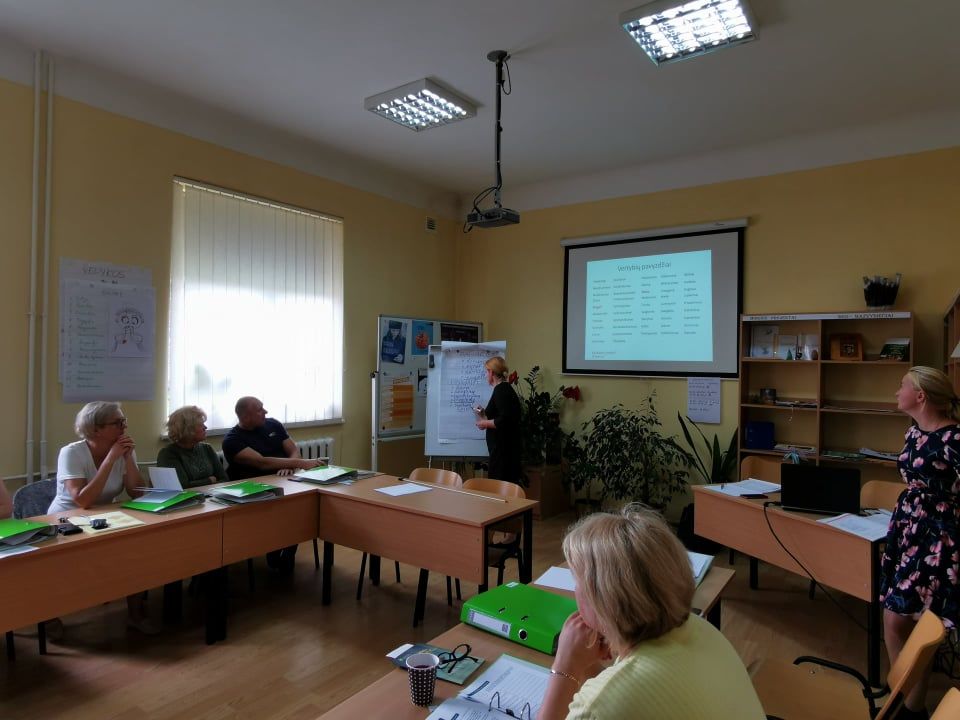 2020-08-25 Biblioteka – edukacijų laboratorija Šiandien rajono ugdymo įstaigų bibliotekininkai tobulino kompetencijas dalyvaudami ilgalaikės programos „Edukacijos bibliotekoje galimybės ir iššūkiai: bibliotekininkų patirtis“ III modulio mokymuose „Biblioteka – edukacijų laboratorija“. Programos lektorė – Jolanta Gudeikytė, Raseinių Marcelijaus Martinaičio viešosios bibliotekos Informacinių paslaugų ir vaikų literatūros skyriaus vedėja, įtaigiai ir įdomiai dalijosi patirtimi, pristatė ugdymo bibliotekoje galimybes, parengtus ir vykdomus projektus.