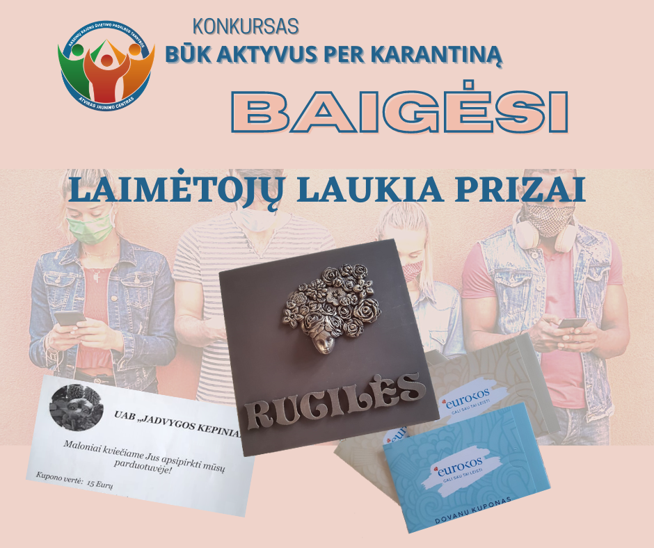 Raseinių rajono švietimo pagalbos tarnybos atvirojo jaunimo centro paskelbtas konkursas 2020 m. balandžio 9 d. ,,Būk aktyvus per karantiną“ baigėsi. Šio konkurso tikslas buvo: skatinti Raseinių rajono jaunimo užimtumą, aktyvumą ir iniciatyvumą karantino laikotarpiu, taip pat skatinti laikytis karantino sąlygų.