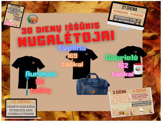 Konkursą organizavo AJC savanoriai. Į konkursą įsitraukė 24 jaunuoliai. Konkurso „30 dienų iššūkis“ veiklos buvo labai įvairios ir skirtingos: organizavome fotosesijas, dalinomės nuomonėmis apie peržiūrėtus filmus, maisto receptais, perdirbinėjome plastiką ir t.t. Konkurso dalyviai už kiekvienos dienos temos atlikimą rinko taškus, kurie nulėmė šio konkurso nugalėtojus: