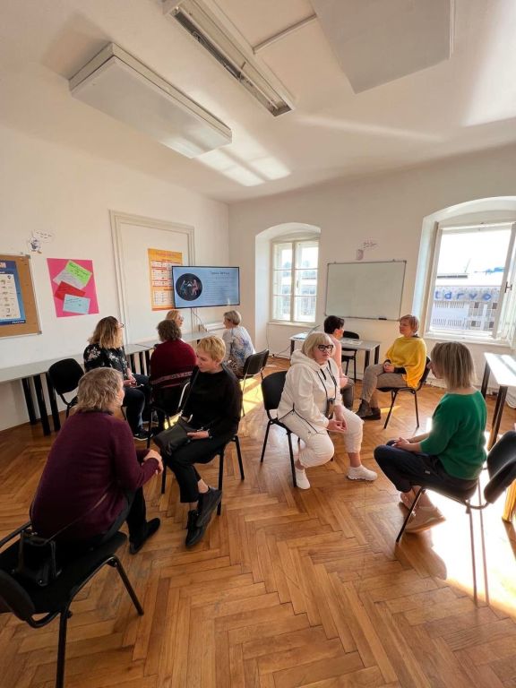 Mokymų metu aptarti formalaus, neformalaus švietimo ir savišvietos ypatumai suaugusiųjų mokyme, itin akcentuota palankios mokymosi atmosferos sukūrimo svarba.