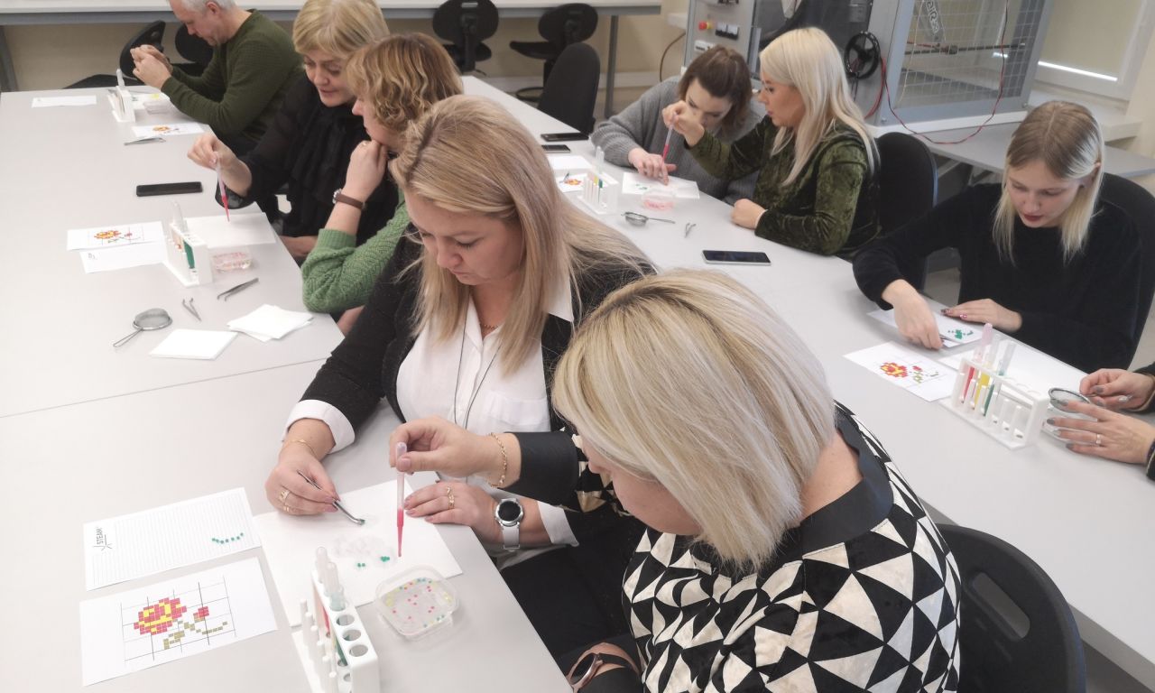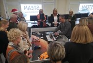 Erdvios patalpos, tvarumo filosofija, moderniausia įranga aprūpintas STEAM atviros prieigos centras, išbandytos dvi edukacinės veiklos „STEAM kremo gamyba“ ir „Cheminė mozaika“– tai viena šio vizito dalis, sukėlusi visą eilę minčių ir pamąstymų.