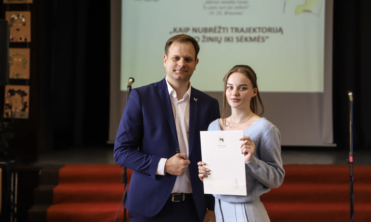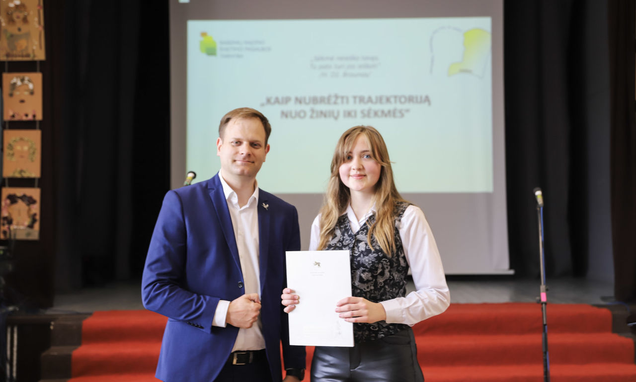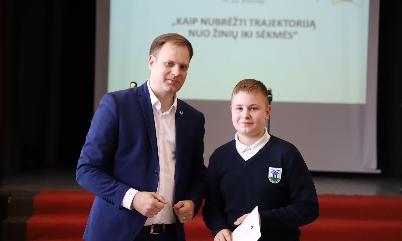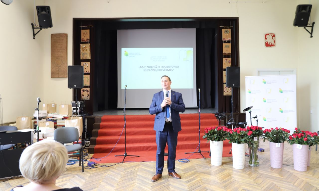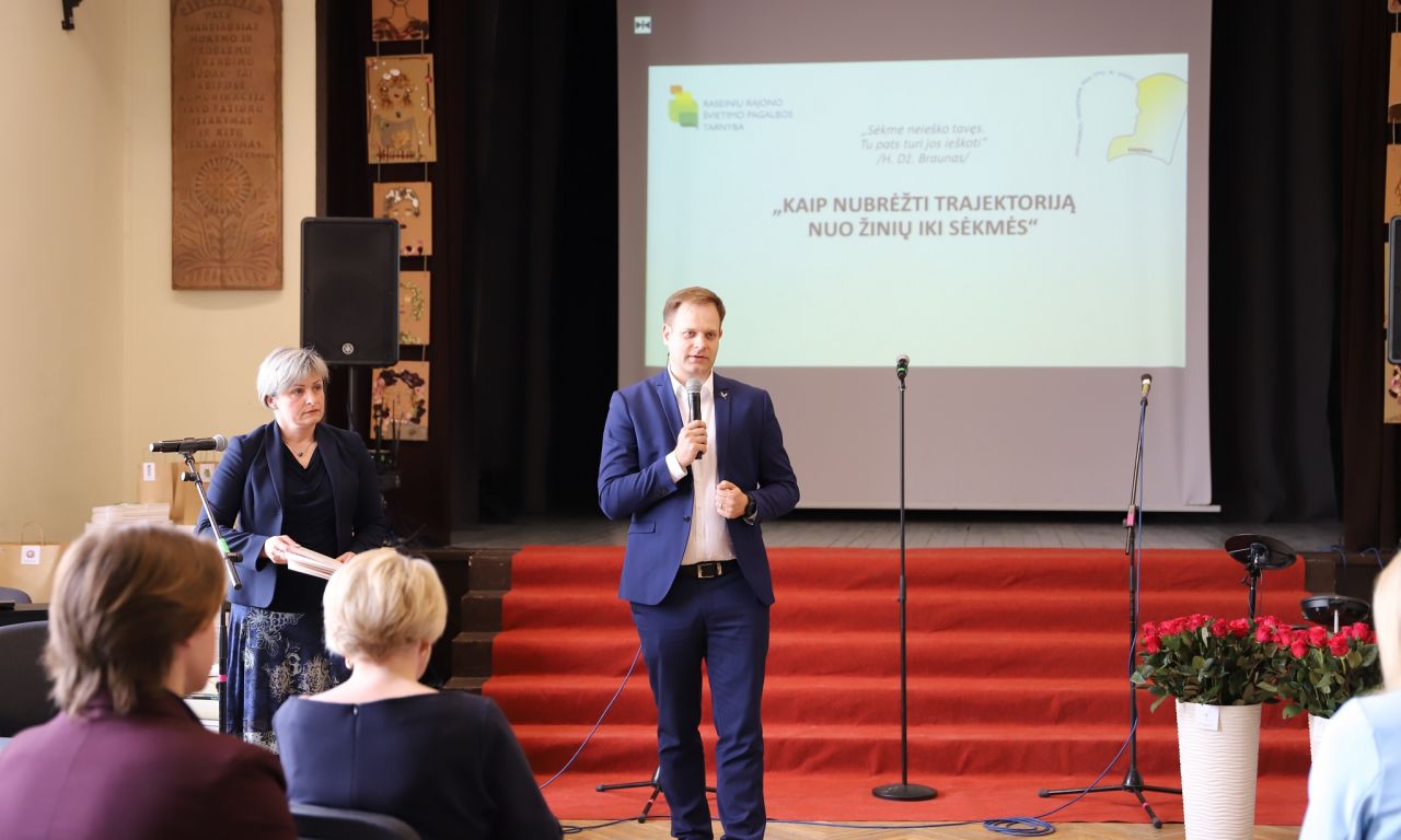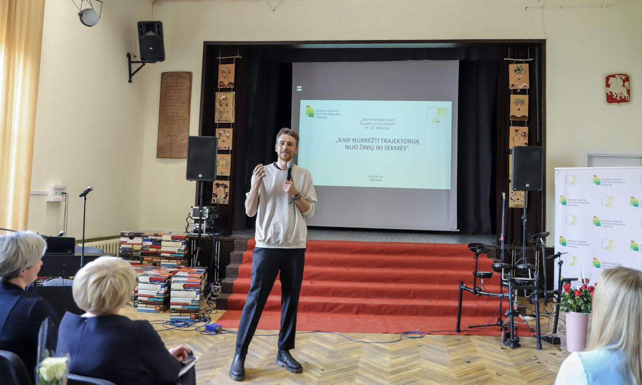 Gražią ir prasmingą trajektoriją nuo žinių link sėkmės brėžia buvę mūsų rajono mokiniai, kurie garsina Raseinių kraštą, Lietuvą. Savo sėkmės istorija ir įžvalgomis pasidalino Vytautas Puidokas, naujosios kartos Lietuvos režisierius, prodiuseris, menininkas, 2020 metų „Sidabrinės gervės“ nominantas už dokumentinį filmą „El Padre Medico“, mūsų kraštietis, Raseinių Šaltinio vidurinės mokyklos absolventas. Muzikinį sveikinimą dovanojo Evelina Dubauskaitė, Raseinių r. Ariogalos gimnazijos mokinė, dainuojamosios poezijos konkurso laureatė (vadovė – Evelina Budrienė) ir Prezidento Jono Žemaičio gimnazijos vokalinis instrumentinis ansamblis (vadovė – Jolita Čiuprovienė). O visiems šventinio renginio „Kaip nubrėžti trajektoriją nuo žinių iki sėkmės“ dalyviams linkime kantrybės, atkaklumo ir sėkmės kiekvienam brėžiant savas trajektorijas.