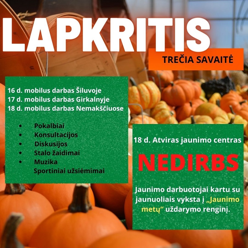 2022-11-03 / AJC veiklos Numatomų AJC veiklų planas. 2022 m. lapkričio I sav. Numatomų AJC veiklų planas. 2022 m. lapkričio I sav.