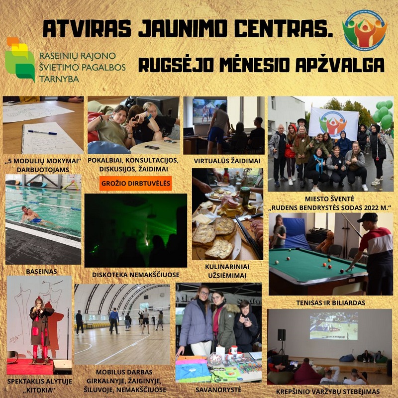 PlačiauRaseinių rajono švietimo pagalbos tarnybos Atviras jaunimo centras (toliau – Raseinių AJC) rugsėjo mėnesį toliau tęsė aktyvų darbą su jaunimu.