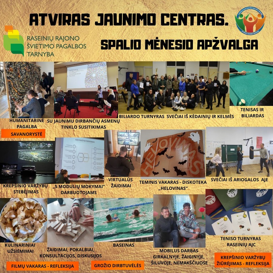 PlačiauRaseinių rajono švietimo pagalbos tarnybos Atviras jaunimo centras (toliau – Raseinių AJC) spalio mėnesį toliau tęsė aktyvų darbą su jaunimu.